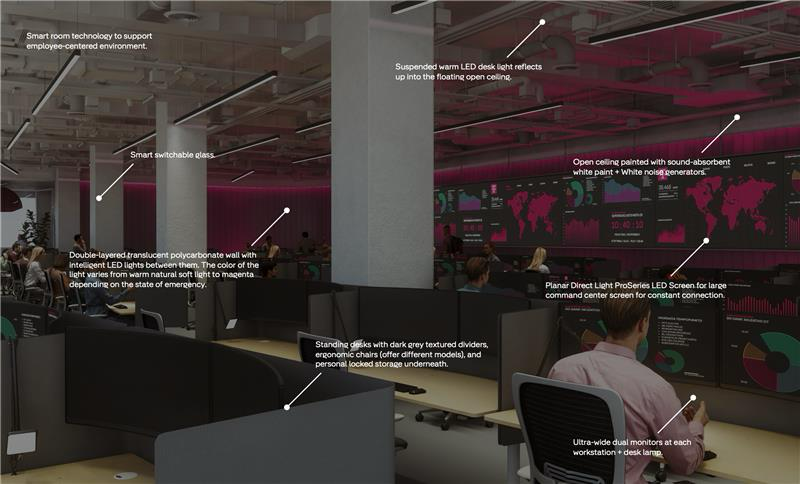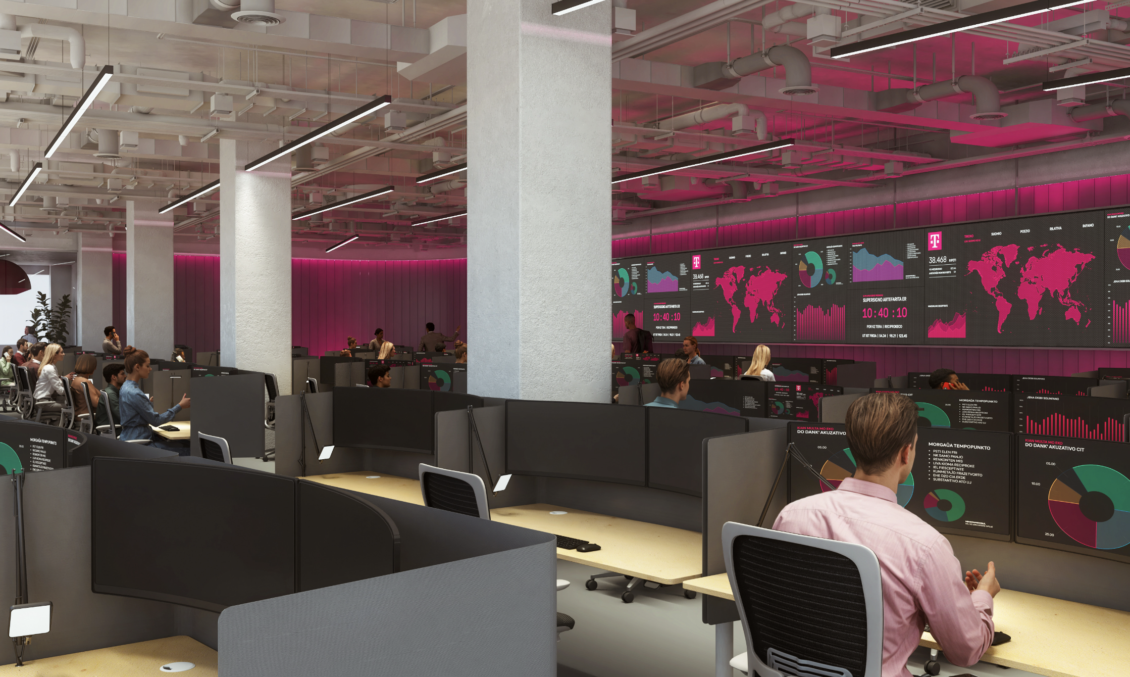 Designit partnered with T-Mobile to design a state-of-the-art Cybersecurity Defense Center in Seattle that reimagines cybersecurity as a craft through “The Artist Workshop” concept. The space blends T-Mobile’s bold, human-centered brand with resimercial comfort, inclusivity, and cutting-edge technology to foster collaboration and innovation.